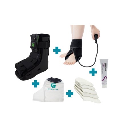 • L’attelle est munie d’une pompe de compression à froid permettant d’intensifier le soulagement de la zone traumatisée